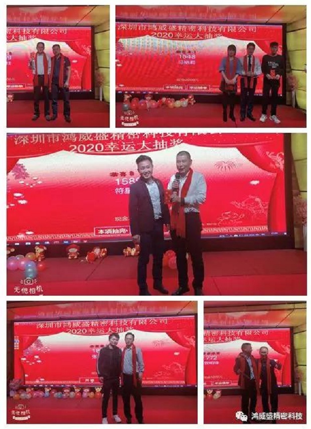 2020年1月10日晚18:00,伴随着《好运来》优美旋律,深圳市鸿威盛精密科技有限公司迎新晚会喜庆地拉开了帷幕,鸿威盛大家庭所有成员及部分合作伙伴的代表们出席了此次晚会,现场处处喜气洋溢。